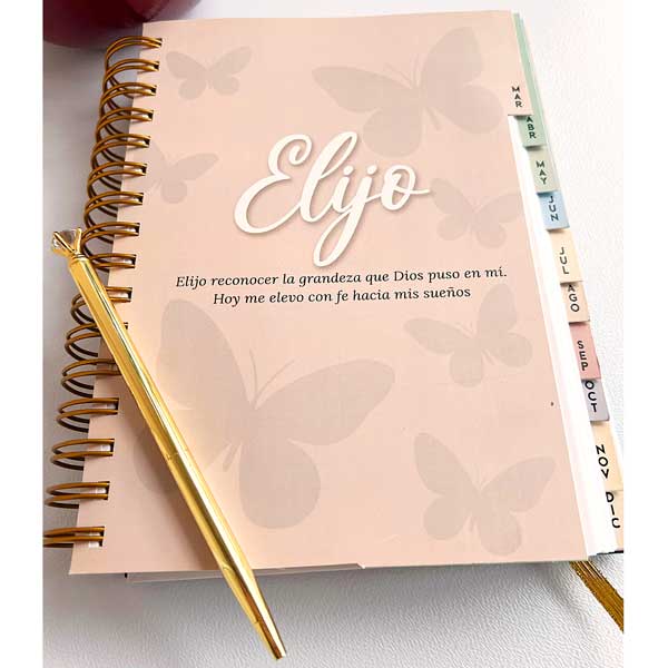 Diseñada para mujeres que desean brillar con propósito.  Esta agenda es mucho más que un planificador. Es una compañera de sueños, metas y transformación personal.