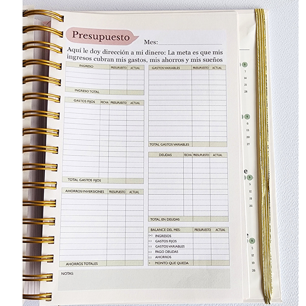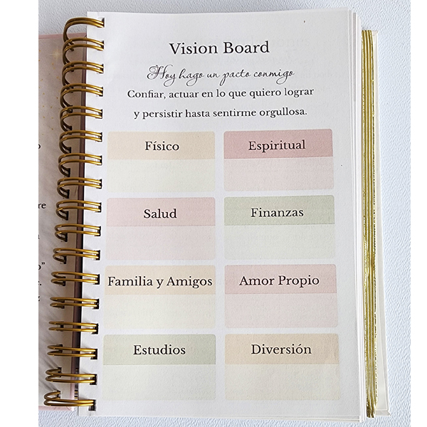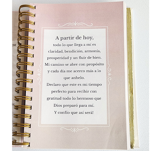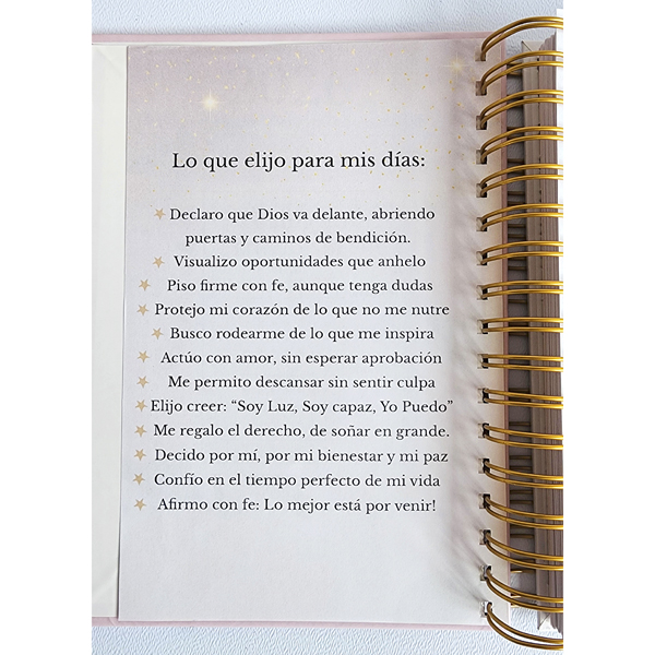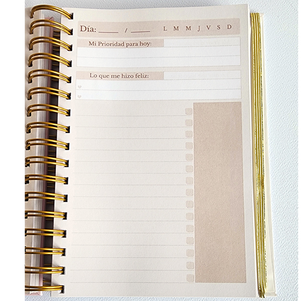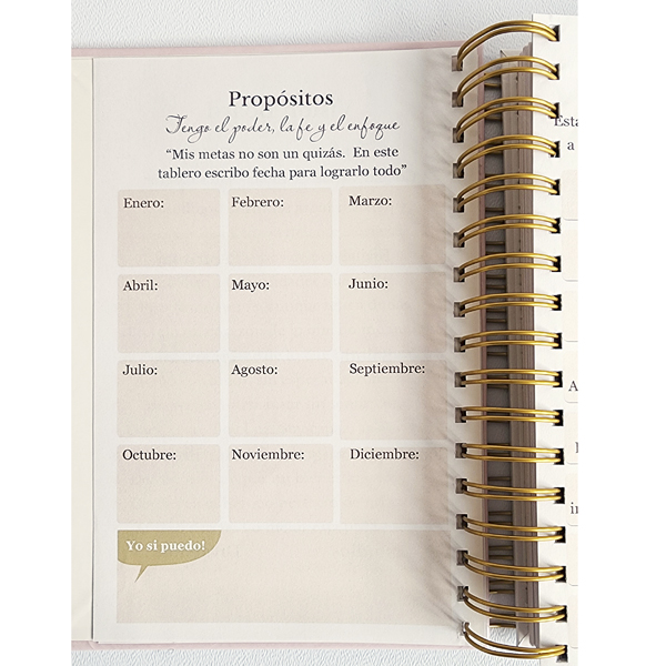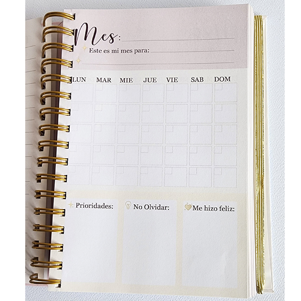 Diseñada para mujeres que desean escribir su año a su propio ritmo.  Es una agenda de fecha abierta. Útil en cualquier momento del año.